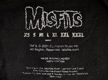 The Misfits Crimson Ghost face Tee Shirt black with white print Label says L 100% cotton like new measure 21.5 inches across chest from underarm to underarm when laid flat measures 24.5 inches from front of collar to waist measures 28 inches from top of shoulder to waist Click the "mo...