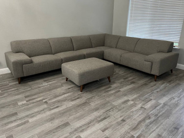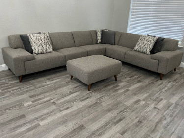 Very nice Thomasville sectional sofa. It can be longer on either side. It has two 71 inch sections with arm rest, one armless chair that is 28 inches wide that can be used on the right or left side of the sofa to make either side longer. The corner piece is 38 inches wide. The ottoman is 38 inches wide and 29...