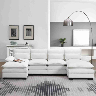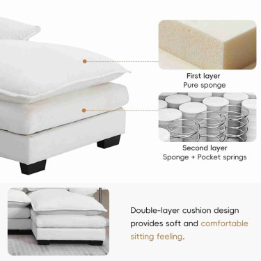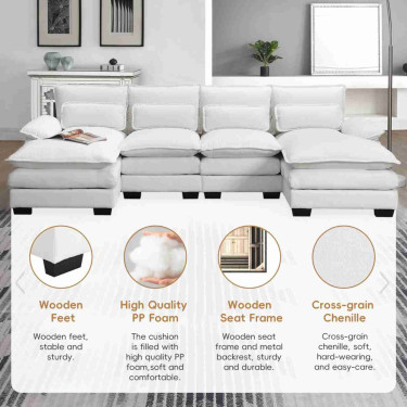 Elevate your living space with our modern sectional sofa, featuring a classic design and high-quality construction. Crafted with chenille upholstery, armrest pockets, and four lumbar pillows, this sofa provides unmatched comfort and support for your head, neck, back, and entire body.