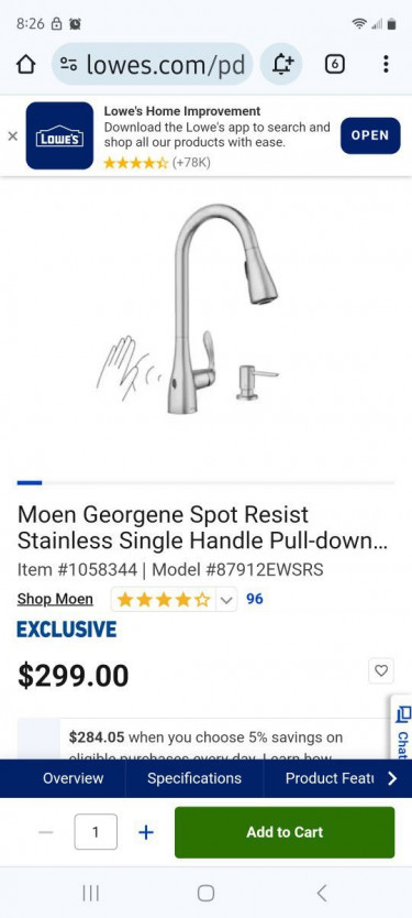 Moen kitchen faucet with motion sensor. Replaced in new build. Works perfect.
