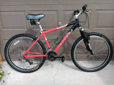 NOVARA ASPEN Mountain bike Size 26 with 24 Speed, front and rear quick release wheels, very lightweight Aluminum Frame and also does have an upgraded very comfortable seat for a more comfortable ride. Everything functions perfect and also the tires are in perfect like new condition. Always kept indoors, only ...