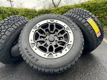 20 inch brand new 20x10 custom 2 colored black / polished aluminum machined finish rims for a Dodge Ram 1500 2003 until 2018 model Bolt pattern is 5 lug 5x139.7 mm 5x5.5 inch Rims come mounted on Kenda Klever A/T all terrain 275/60r20 which are about 33” diameter tires and very nice quality ride and gr...
