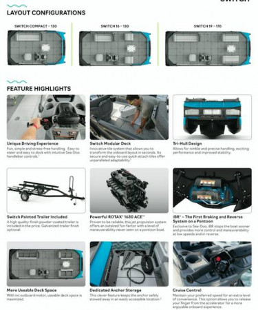Brand new leftover with full factory warranty. The Sea-Doo Switch is a jet-powered pontoon boat featuring a super-stable hull and PWC-like controls. What made the Sea-Doo Switch Boating Magazine’s 2022 Boat of the Year? One word: accessibility. The Switch garnered high praise for its competitive price, eas...