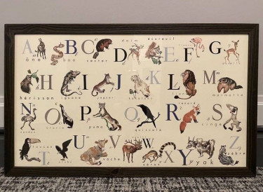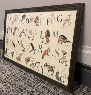 If the listing is up it is available! :) New amazing large RH poster for a child's room. All 26 letters are there with beautiful aminals throughout. The words are in French. Very sweet poster. Covers a nice area of the wall where your crib stands. Large 43X25". Natural wood frame. A complete treasure to o...
