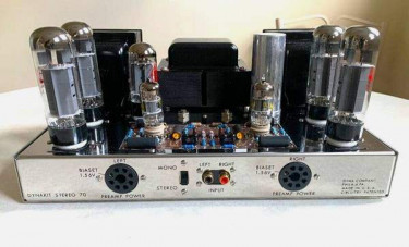 Up for sale is this FANTASTIC sounding and looking 70 WATTS Total Power Plug and Play Dynaco ST-70 amplifier that has just been built on a brand NEW beautiful shiny stainless steel chassis with GENUINE ORIGINAL Dynaco transformers! All you need to do is install the INCLUDED tubes. ALL the electronics are NEW ...