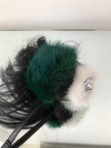 Fendi Mohawk Fur Monster Charm for Handbags composed of dyed mink (Finland) fur, crystal nose and metal spike eyes, a Lamb leather strap and Lobster clasp with logo charm. Size is 4"H x 4"W, 100 authentic bought in Fendi boutique at 57th street, made in Italy, this one is very rare and super hard to find sinc...