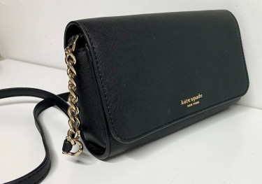 Kate Spade New York small flap bag. Simple, elegant design - perfect for every day use or dressy events. Can be used as a crossbody, a shoulder bag—or the strap can be removed and it can be used as a clutch. Made of Saffiano (cross-hatch pattern) leather, which is very durable and scratch-resistant. Plent...