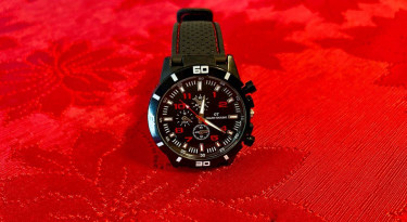 Men’s Sports Watch Black With Red Accents New In Plastic Wrapper Great Gift NOTE: THE SUBDIALS AND THE CHRONOGRAPH ARE ONLY DECORATIVE. This will be a great first sports watch for boys or men. With a large, clear, colorful and luminous display, it makes it easy to quickly tell the time at home, in ...