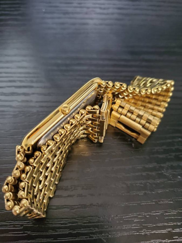 Dial Pattern Roman Indices Roman Numerals Year Manufactured 1980-1989 Band/Strap Two-Piece Strap Case Color Gold Handedness Left Department Men Caseback Snap Lug Width 20 mm Watch Shape Rectangle Style Casual, Dress/Formal Features 12-Hour Dial Case Size 26 mm Case Material Gold Plated Movement...