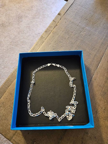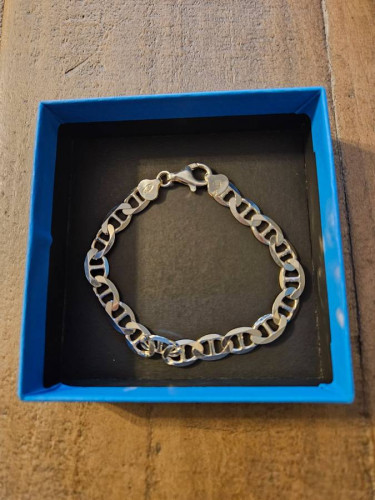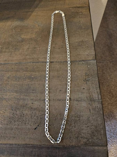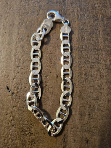 NEW STERLING SILVER FLAT MARINER NECKLACE AND BRACELET MADE IN ITALY