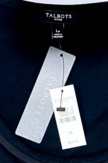 This jet black petite large Talbots top is silky, smooth and super soft. Made in the Philippines. 93% Rayon and 7% Spandex. Original Price $38.50. If you are interested in purchasing, we can meet by the Walmart in Flanders/Target in Hackettstown. Just pick a day Monday through Sunday 10 AM - 6 PM.