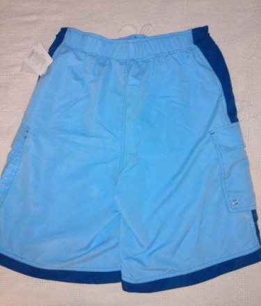 New, never worn, licensed UNC Carolina Tarheels swim trunks - 2 side pockets w/velcro closure (one is plain, one has embroidered Tarheel ram emblem), velcro fly closure w/3-hole tie at elastic waist, mesh netting inside, top to bottom length is 22" size Medium (32/34) New, never opened, UNC Carolina Tar...