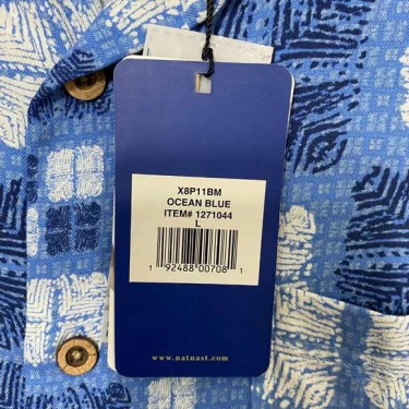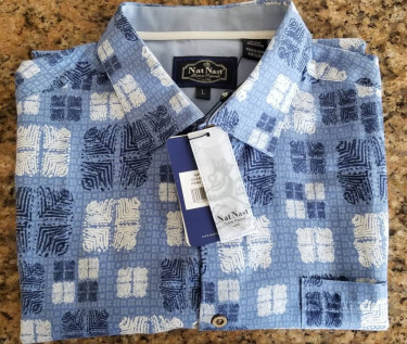 Nat NastOcean Blue Silk Blend Camp Shirt - size Large NEW WITH TAGS and will make a great Gift or Present! Front button closure - Point collar - Chest patch pocket - Back yoke - Straight hem with side vents - 70% silk, 30% cotton True to size. Considered a Regular fit; cut with a little extra room th...