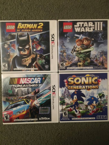 Selling 4 Nintendo 3DS games as a lot. NASCAR unleashed, Batman 2, Star Wars III, Sonic Generations. Asking $25 obo (cash only). Thanks!