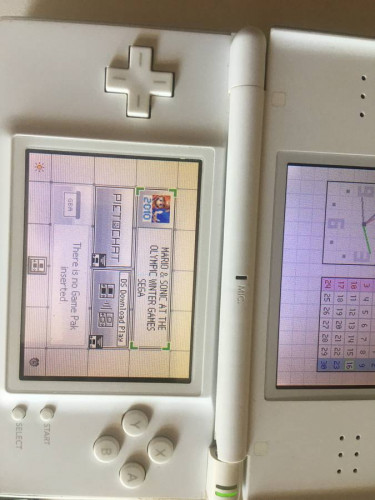 nintendo ds lite console has a weak hinge (small piece missing, top part won't stay up without falling), power button could be better slight screen yellowing but otherwise works comes with 6 games and charger fear factor my word coatch my spanish coach super hornet fa arcade advanced strawberry s...