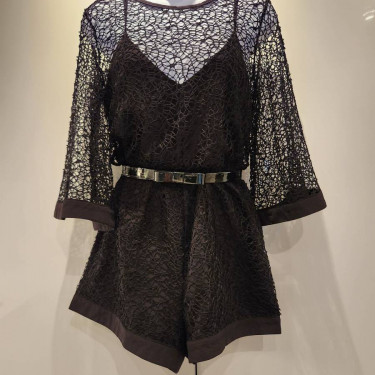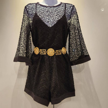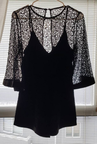 NWT Black Jumper Size 4 *Cover Picture ~ Vintage Versace Belt NOT INCLUDED *2nd Picture ~ Patent Bow Belt **NOT INCLUDED ~ Offer would be considered if you like it *Picture 3 is showing jumper *Pictures 4 and on are Showing Back, What it looks like with Netting/Lace top down, Top Back Button Closure, an...