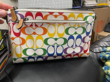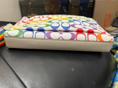 BRAND NEW!!! FEATURES: - Signature coated canvas and smooth calf leather - Zip-top closure, fabric lining - Detachable chain handle with 4 3/4" drop - Outside zip pocket - Detachable strap with 24" drop for shoulder or crossbody wear - 9 3/4" (L) x 6" (H) x 1 1/2" (W) - Detachable round coin case: ...