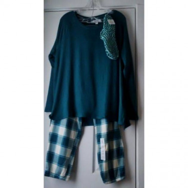 3 Piece Set from Sonoma Goods For Life includes a long sleeve, solid green crew neck top, green & white plaid pants and a pair of coordinating socks. Women’s XL. Very soft, comfortable and not too heavyweight. More Details: Crew neck top has long raglan sleeves, rounded cuffs and released hem; Full lengt...