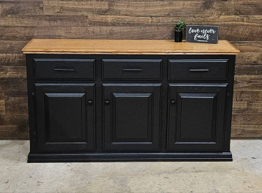 Buffet $265 Painted with Heirloom Traditions paint in black with new black hardware. Top is original and resealed with polycrylic. Features three drawers on roller slides and 3 doors with no shelf behind. 57 inches long, 17 inches deep, 32 inches high. Check out the rest of my furniture and if you have so...