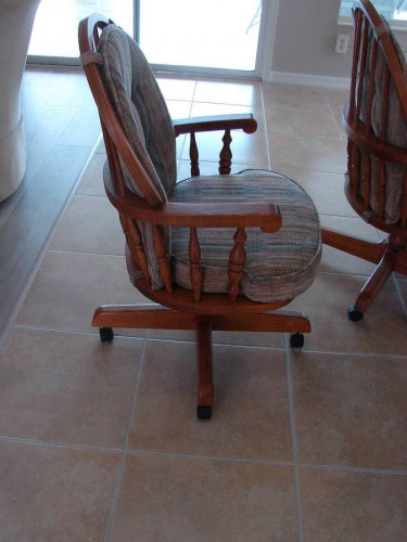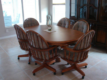 Oak Oval Pedestal Dining room Table with 2 leaves. $ 1300.00 Make Offer. This table measures 69 inches long by 45 inches wide by 30 inches tall. The leaves are 12 inches wide by 45 inches. The 6 Captain chairs on wheels with cushions measure 38 inches tall by 24 ½ inches wide. This set is in very good cond...