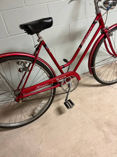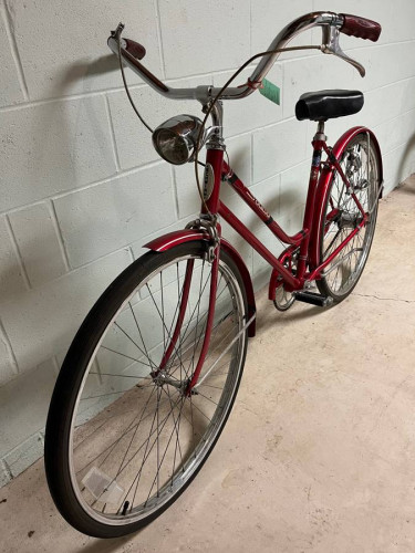 Schwinn three speed bicycle. An older three speed bike. I believe 99% condition. has a little dent in the front fender little little tiny dent thing in the headlight. the lights work off the generator on the back wheel they both work. the brakes work good. The shifter works good. It has original tires. origin...