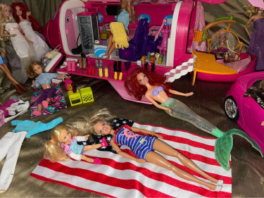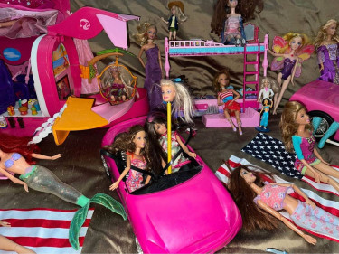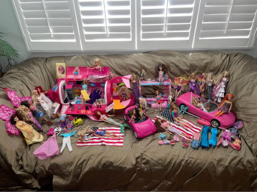 BIG LOT OF BARBIE DOLLS, INCLUDING BARBIE JET, TWO BARBIE CARS, WELL USED BUT STILL HAS PLENTY OF LIFE LEFT!! This is a very big collection, A lot of missing parts, One car is missing the windshield and the other the windshield is bent, Car needs new batteries and the remote works fine. Jet is missing the poo...