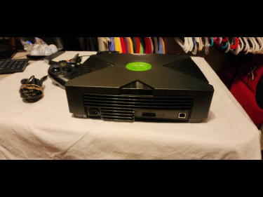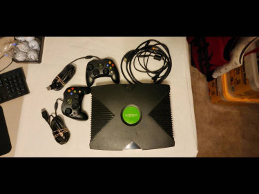 Microsoft Original / First Xbox System Console w/ 2 Controllers AV & Power Supply 4 games 7 dvds - couple still sealed Unopened dvd remote Never really used...wife bought it for me after back injury Mint condition