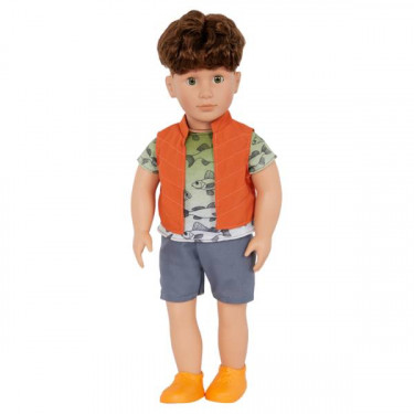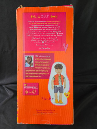 Our Generation Camden 18" Camping Boy Doll New in Box Team up with Camden and explore outdoor adventures together – camping is oh-fish-cially his favorite activity He has hazel eyes that open and close Short, wavy brown hair Huggable soft body, and can rotate his neck, arms, and legs to easily change ou...