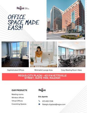 Get a nicely appointed furnished office with beautiful downtown views. Located in One City Plaza gives you access to all that downtown Raleigh has to offer.