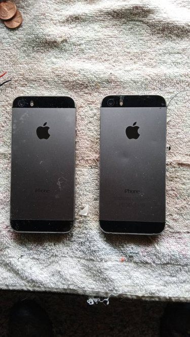 Pair of iPhones space gray iPhones fifth generation If listed then it's available . For parts only . Both phones do power up . One has cracked screen bottom left side . No data cable included . This is for someone who works on apple iPhones . Pair of phones only .