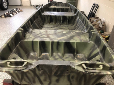 Pelican Intruder Jon Boat - Trailer NOT included. 12’ long 48” beam 32” bottom Trolling motor mount in the front, outboard mount on the rear, can accept up to 6 H.P. No damage, no holes, has not been used in years. Was used at a duck property to wade with to carry decoys and equipment. Would make a sim...