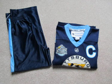 Various boys Penguins hockey clothes priced as listed from smoke free, pet free home. Decals are intact since they were not dried in the dryer: -2011 Pittsburgh Penguins Sidney Crosby Winter Classic replica jersey in youth size small and size small pants. The jersey is 22 1/2" from the top of the shoulde...