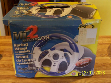 Playstation MC2 MicroCon Racing Wheel and Pedal. Original Box and original plastic cover inside box. Don't think it has ever been used. Bought it new many years ago and son never used it at all. $20 cash firm. 936-853-4-4-one-one.
