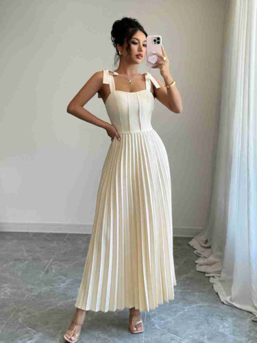 Pleated Tie-Shoulder Maxi Dress