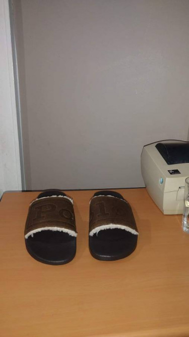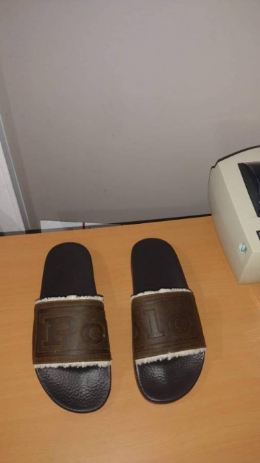 BRAND NEW! POLO RALPH LAUREN MEN SANDALS SIZE: 9 Polo Ralph Lauren's classic pool slide is updated in suede with a plush faux-shearling lining for a refined look and luxurious feel. Bold logo lettering accents the top for a designer finish.• Open-toe slip-on slide sandals• "Polo" embossed across the t...