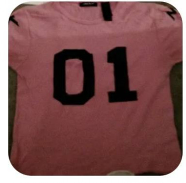 Adorable but it no longer fits! Pink/ black. Covers belly. Not a crop top. Size medium. Comes from a pet and smoke free home