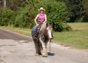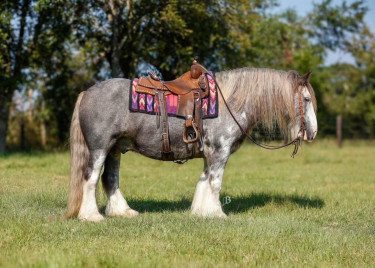 Blue is a stunning 10-year-old gypsy vanner gelding, standing at 13.3HH. He’s perfect for anyone, whether you’re a beginner or an experienced rider. With his sweet temperament, Blue is loved by all and is ready for new adventure...