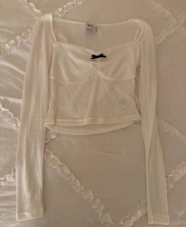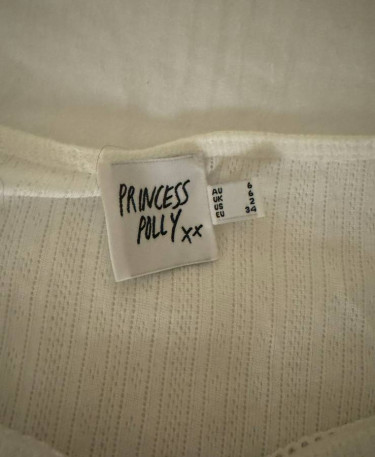 Princess Polly White Long Sleeve Shirt with Black Bow, Size 2, Worn Once