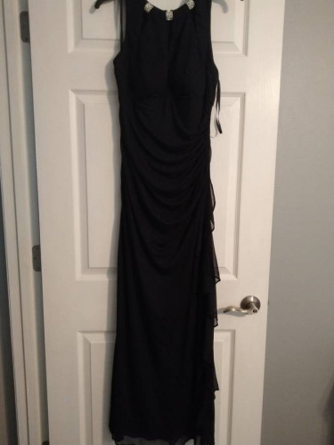 worn only once for a wedding measurements taken while laying flat: from underarms to underarms 17 1/2" waist: 15" hips: 18" from top to bottom 57" in clean condition Cash and pick up only