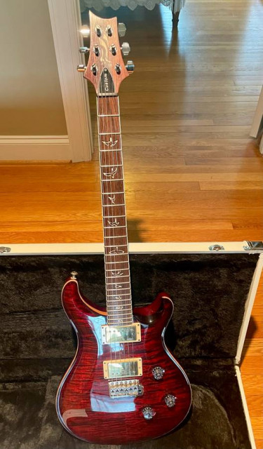 PRS 25th Anniversary Custom 24 10-Top: A Remarkable Elite Guitar Features: * Eagle Headstock Inlay: Crafted with precision and elegance. * PRS-Designed Tremolo: Ensures smooth and expressive playing. * PRS 14:1 Phase II Low-Mass Locking Tuners: Stay in tune effortlessly. * 57/08 Treble and Bass Humbucker...
