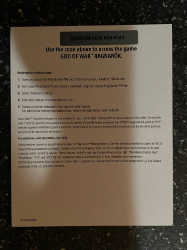 Brand New PS5 God Of War Ragnarok full game digital code download voucher This is code for full game digital download Selling with actual card unscratched $40 cash takes it