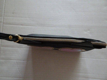 KITTY PURSE/CLUTCH/CROSS BODY BAG T-SHIRT & JEANS T-shirt & Jeans Crossbody bag. A solid black color bag that features a cute black cat character with appliqued iridescent heart eyes, printed gold heart nose and whiskers. The bag is made of faux leather and has a zip closure. Measuring 8.5 inche...