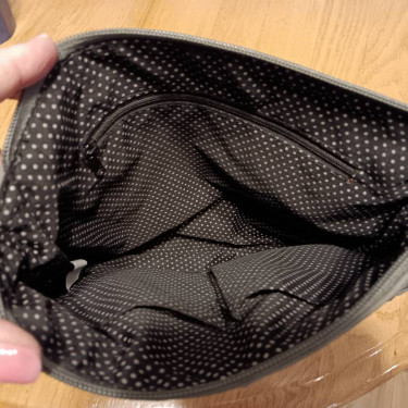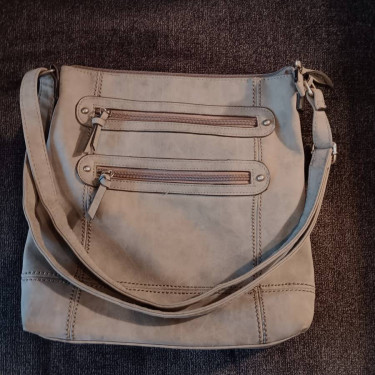 Excellent condition purse olive color. Soft texture. Fully lined. Two exterior zip pockets. Interior has one zip pocket and two open top pockets. Body of purse is approximately 12" x 12" and 1.5" across the bottom. Very long adjustable strap so this can be worn as either a shoulder bag or cross body. Shortest...