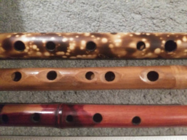 Three excellent bamboo flutes made by knowledgeable artisans Unknown maker, has scalloped tone holes for ease of playing and to refine tuning 16.5" - Key of F# - $35 Appears to be made by Roger Blackburn of Sun Reed Instruments Beautiful colors on bamboo body 16" length - Key of G - $50 ...