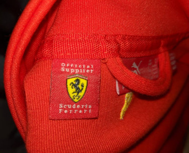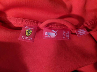 -Original red Puma Ferrari track jacket (2007). This Puma Ferrari track jacket has an embroidered puma cat in the neck and on the right chest. The left chest feature the Scuderia Ferrari shield badge along with an Italian flag arrow badge running down the front. Size XL Jacket is $130. -1961-62 Hardwood ...