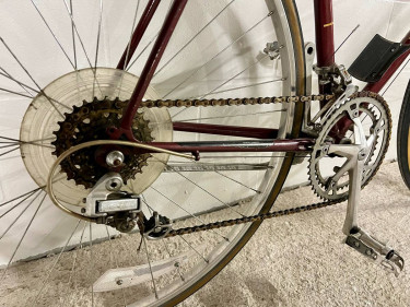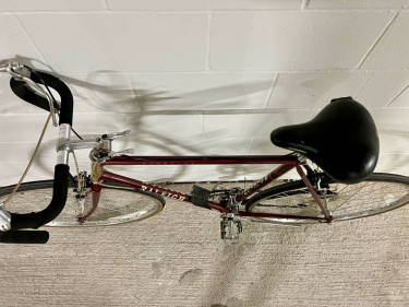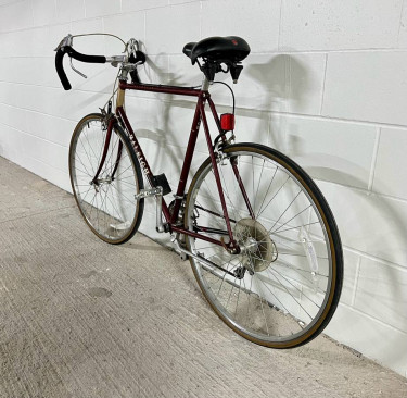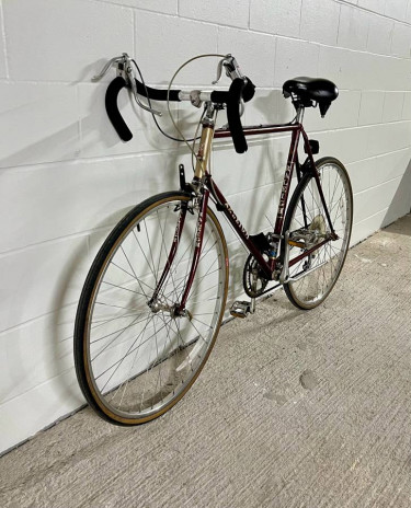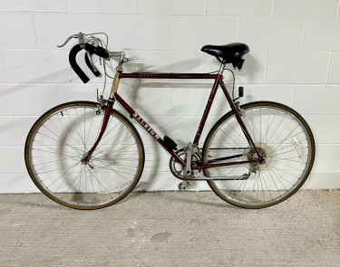 Beautiful maroon and gold Raleigh Olympian road bike in excellent condition. Made with Raleigh 555 double-butted Chromoly steel - built to last and very durable. Smoothly shifts into all gears, strong brakes, little to no rust, minimal cosmetic wear for the age, only issue is small tear in saddle (doesn’t...
