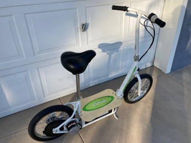 In MINT (it looks brand new) condition and with brand new batteries (installed 2/13/2024). This scooter goes up to 18mph and last about 10-12 miles per charge. They are very comfortable and you can stand or sit on them. Paid over $500 when new. Now $300. Price is firm and the scooter comes with a charger. T...