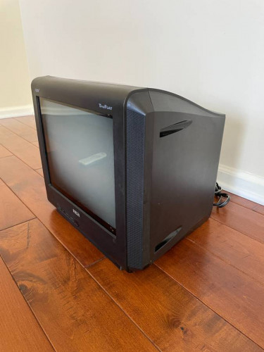This monitor is in working condition. Visuals may have a green tint which can be adjusted on the Menu screen using the remote. Remote works. Volume sounds great.