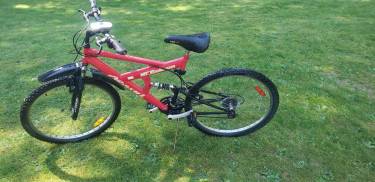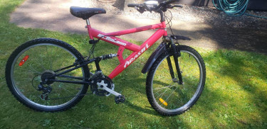 Arashi, Mt. Robson, 21 speed mountain bike, with full suspension. Overall, its in good condition.Just installed a better Fila gel seat. Quick release front wheel. Has a Huffy headlight. Tires hold air and rides fine. Call, text or email.