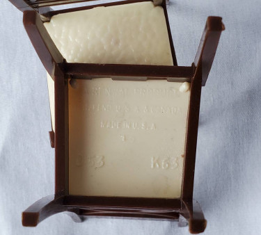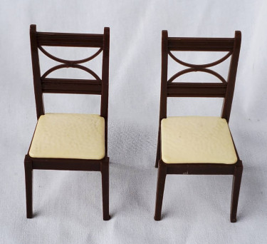 Vintage Renwal 1950s Miniature Dollhouse Furniture Kitchen / Dining Table Set K57 Kitchen Dining table and 2 matching chairs Brown and Ivory The table is 3 5/8 by 2 1.4 inches and is 1 7/8 inches tall. The chairs are about 2 5/8 inches tall. Collectible antique doll house furniture set Renwal Brand ...